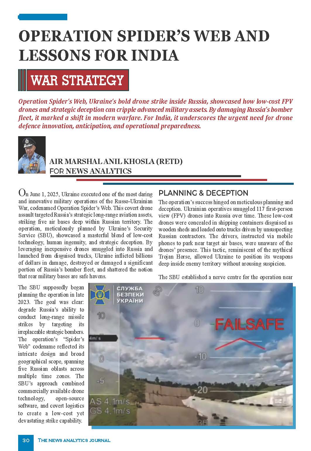 697: OPERATION SPIDER’S WEB – UKRAINE’S AUDACIOUS DRONE STRIKE: LESSONS FOR INDIA